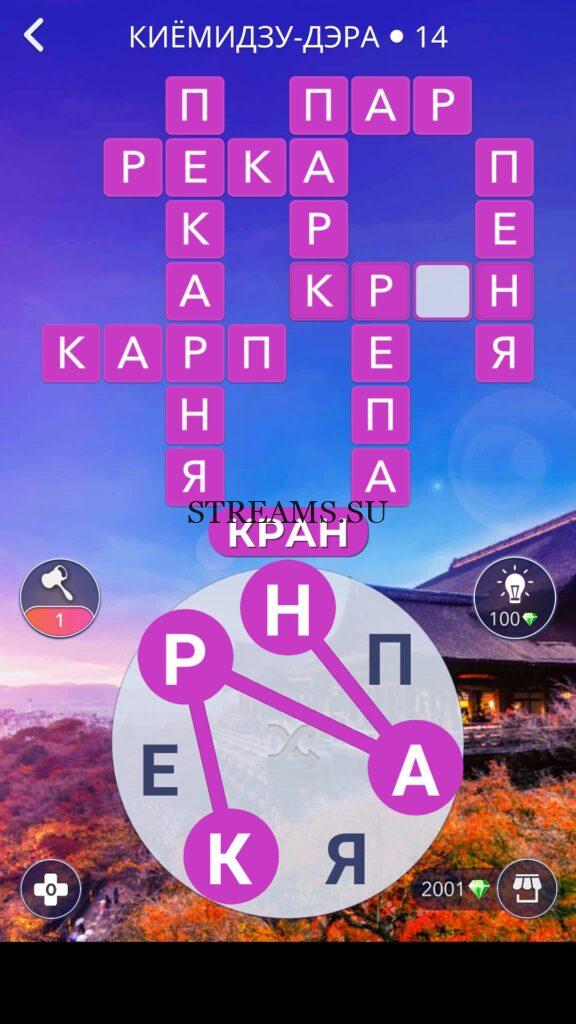 WOW ответы — Уровень 14: КИЁМИДЗУ-ДЭРА. (333 — ВОЯЖ) В этом уровне нам нужно составить слова из следующих букв: «ЕПЯКНРА«. Готовы совершить кругосветное путешествие? Эта чудесная игра исполнит ваше желание! С каждым последующим уровнем, будет расти сложность заданий. Игра WOW создана в виде кроссворда, в котором нужно будет соединять буквы, чтобы получить несколько слов. Чем больше вы будете отгадывать слов, тем проще будет отгадать остальное. С помощью Words of Wonders вы сможете расширить свой словарный запас, улучшить внимательность и хорошенько прокачать свой мозг! Если вы не можете пройти один из уровней, воспользуйтесь подсказкой с нашего сайта.
