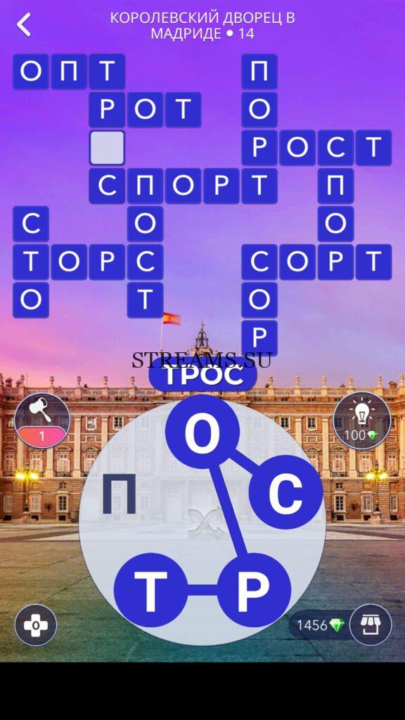 WOW ответы — Уровень 14: КОРОЛЕВСКИЙ ДВОРЕЦ В МАДРИДЕ. (221 — ВОЯЖ) В этом уровне нам нужно составить слова из следующих букв: «ТСПОР«. Готовы совершить кругосветное путешествие? Эта чудесная игра исполнит ваше желание! С каждым последующим уровнем, будет расти сложность заданий. Игра WOW создана в виде кроссворда, в котором нужно будет соединять буквы, чтобы получить несколько слов. Чем больше вы будете отгадывать слов, тем проще будет отгадать остальное. С помощью Words of Wonders вы сможете расширить свой словарный запас, улучшить внимательность и хорошенько прокачать свой мозг! Если вы не можете пройти один из уровней, воспользуйтесь подсказкой с нашего сайта.