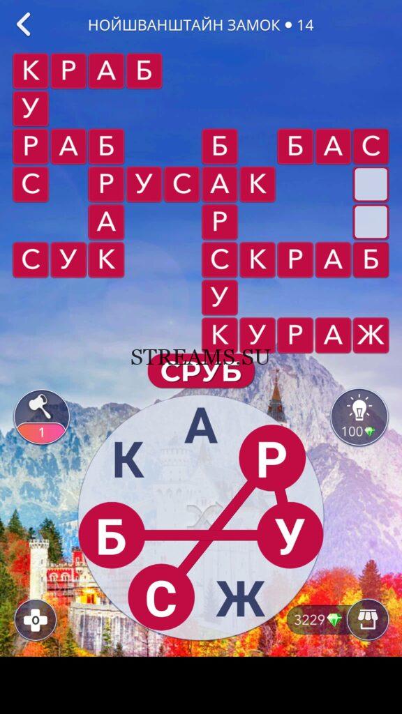 WOW ответы — Уровень 14: НОЙШВАНШТАЙН ЗАМОК. (621 — ВОЯЖ) В этом уровне нам нужно составить слова из следующих букв: «БКРАСУЖ«. Готовы совершить кругосветное путешествие? Эта чудесная игра исполнит ваше желание! С каждым последующим уровнем, будет расти сложность заданий. Игра WOW создана в виде кроссворда, в котором нужно будет соединять буквы, чтобы получить несколько слов. Чем больше вы будете отгадывать слов, тем проще будет отгадать остальное. С помощью Words of Wonders вы сможете расширить свой словарный запас, улучшить внимательность и хорошенько прокачать свой мозг! Если вы не можете пройти один из уровней, воспользуйтесь подсказкой с нашего сайта.
