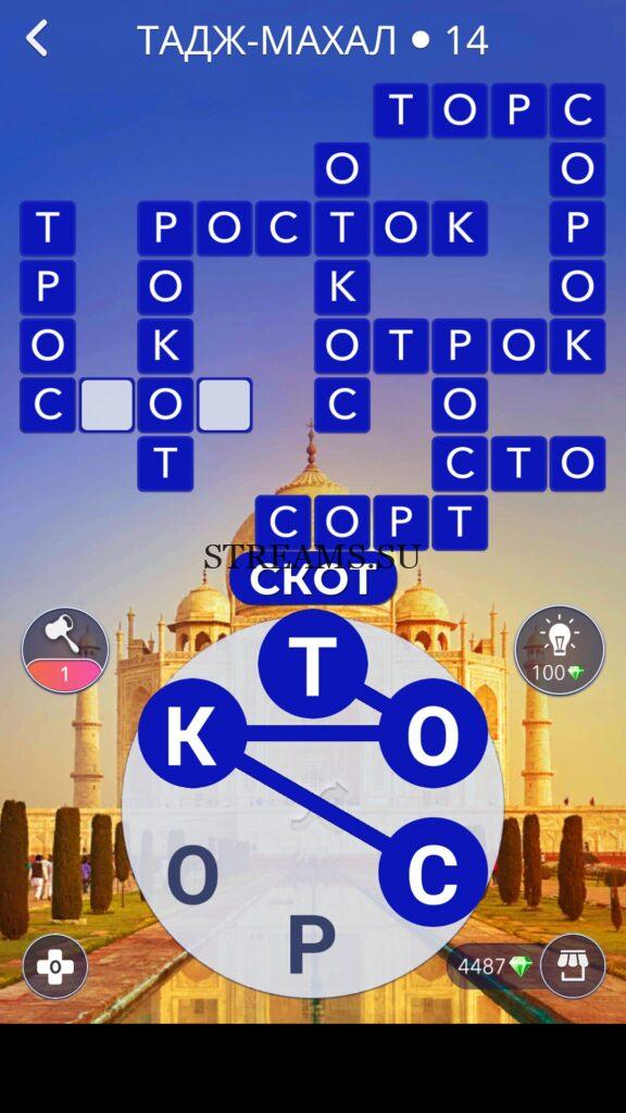 WOW ответы — Уровень 14: ТАДЖ-МАХАЛ. (861 — ВОЯЖ) В этом уровне нам нужно составить слова из следующих букв: «СООРТК«. Готовы совершить кругосветное путешествие? Эта чудесная игра исполнит ваше желание! С каждым последующим уровнем, будет расти сложность заданий. Игра WOW создана в виде кроссворда, в котором нужно будет соединять буквы, чтобы получить несколько слов. Чем больше вы будете отгадывать слов, тем проще будет отгадать остальное. С помощью Words of Wonders вы сможете расширить свой словарный запас, улучшить внимательность и хорошенько прокачать свой мозг! Если вы не можете пройти один из уровней, воспользуйтесь подсказкой с нашего сайта.