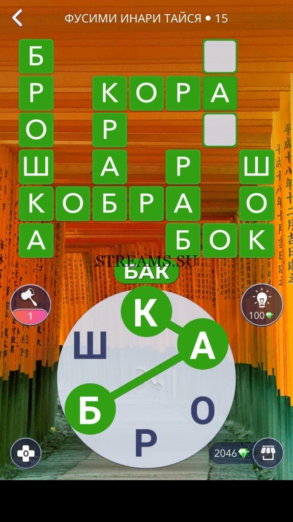 WOW ответы — Уровень 15: ФУСИМИ ИНАРИ ТАЙСЯ. (350 — ВОЯЖ) В этом уровне нам нужно составить слова из следующих букв: «БОКАШР«. Готовы совершить кругосветное путешествие? Эта чудесная игра исполнит ваше желание! С каждым последующим уровнем, будет расти сложность заданий. Игра WOW создана в виде кроссворда, в котором нужно будет соединять буквы, чтобы получить несколько слов. Чем больше вы будете отгадывать слов, тем проще будет отгадать остальное. С помощью Words of Wonders вы сможете расширить свой словарный запас, улучшить внимательность и хорошенько прокачать свой мозг! Если вы не можете пройти один из уровней, воспользуйтесь подсказкой с нашего сайта.