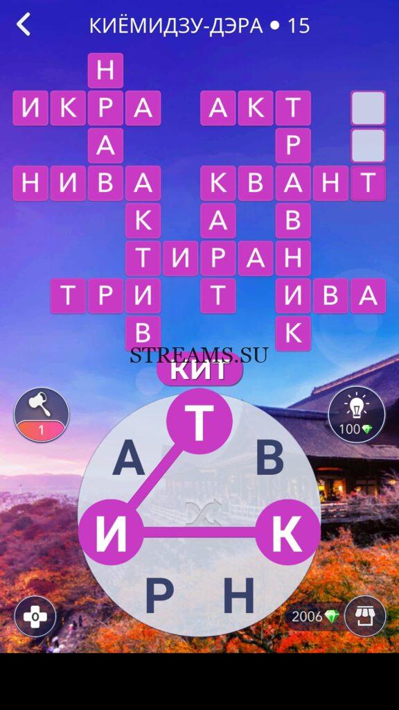 WOW ответы — Уровень 15: КИЁМИДЗУ-ДЭРА. (334 — ВОЯЖ) В этом уровне нам нужно составить слова из следующих букв: «ТВКНРИА«. Готовы совершить кругосветное путешествие? Эта чудесная игра исполнит ваше желание! С каждым последующим уровнем, будет расти сложность заданий. Игра WOW создана в виде кроссворда, в котором нужно будет соединять буквы, чтобы получить несколько слов. Чем больше вы будете отгадывать слов, тем проще будет отгадать остальное. С помощью Words of Wonders вы сможете расширить свой словарный запас, улучшить внимательность и хорошенько прокачать свой мозг! Если вы не можете пройти один из уровней, воспользуйтесь подсказкой с нашего сайта.