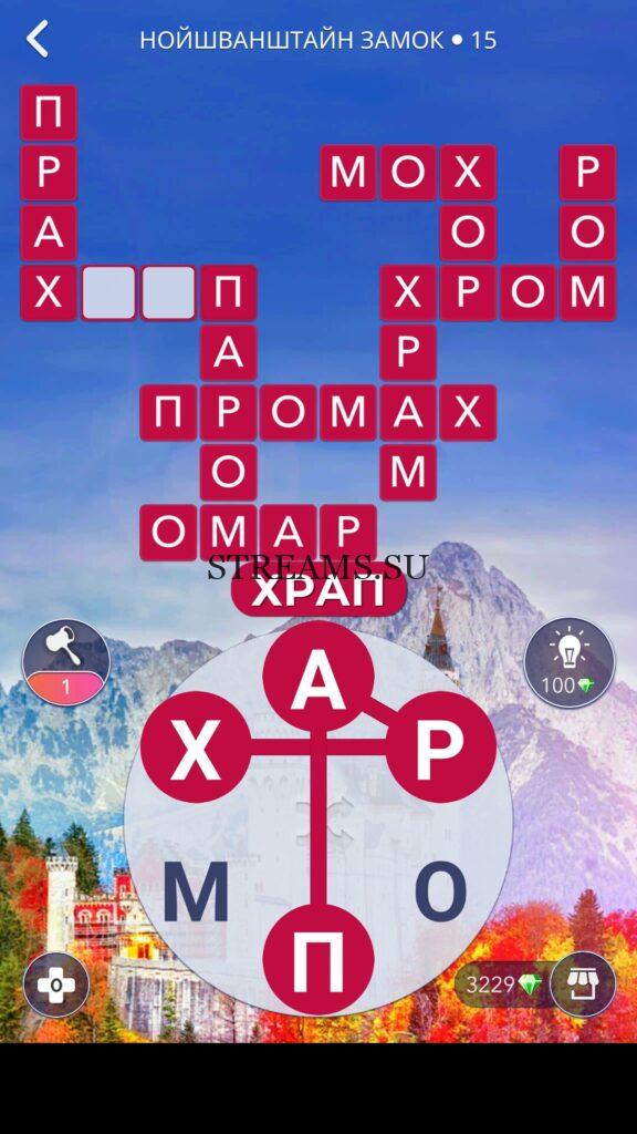 WOW ответы — Уровень 15: НОЙШВАНШТАЙН ЗАМОК. (622 — ВОЯЖ) В этом уровне нам нужно составить слова из следующих букв: «АРОПМХ«. Готовы совершить кругосветное путешествие? Эта чудесная игра исполнит ваше желание! С каждым последующим уровнем, будет расти сложность заданий. Игра WOW создана в виде кроссворда, в котором нужно будет соединять буквы, чтобы получить несколько слов. Чем больше вы будете отгадывать слов, тем проще будет отгадать остальное. С помощью Words of Wonders вы сможете расширить свой словарный запас, улучшить внимательность и хорошенько прокачать свой мозг! Если вы не можете пройти один из уровней, воспользуйтесь подсказкой с нашего сайта.
