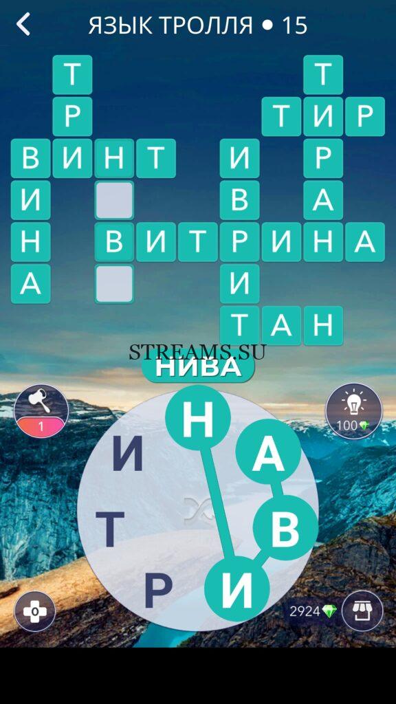 WOW ответы — Уровень 15: ЯЗЫК ТРОЛЛЯ. (558 — ВОЯЖ) В этом уровне нам нужно составить слова из следующих букв: «НАВИРТИ«. Готовы совершить кругосветное путешествие? Эта чудесная игра исполнит ваше желание! С каждым последующим уровнем, будет расти сложность заданий. Игра WOW создана в виде кроссворда, в котором нужно будет соединять буквы, чтобы получить несколько слов. Чем больше вы будете отгадывать слов, тем проще будет отгадать остальное. С помощью Words of Wonders вы сможете расширить свой словарный запас, улучшить внимательность и хорошенько прокачать свой мозг! Если вы не можете пройти один из уровней, воспользуйтесь подсказкой с нашего сайта.