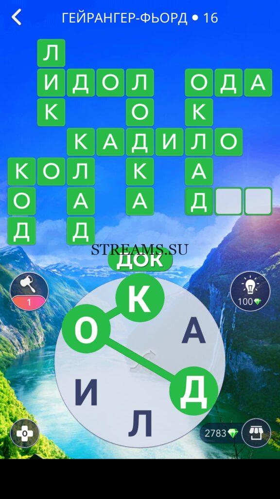 WOW ответы — Уровень 16: ГЕЙРАНГЕР-ФЬОРД. (511 — ВОЯЖ) В этом уровне нам нужно составить слова из следующих букв: «КАДЛИО«. Готовы совершить кругосветное путешествие? Эта чудесная игра исполнит ваше желание! С каждым последующим уровнем, будет расти сложность заданий. Игра WOW создана в виде кроссворда, в котором нужно будет соединять буквы, чтобы получить несколько слов. Чем больше вы будете отгадывать слов, тем проще будет отгадать остальное. С помощью Words of Wonders вы сможете расширить свой словарный запас, улучшить внимательность и хорошенько прокачать свой мозг! Если вы не можете пройти один из уровней, воспользуйтесь подсказкой с нашего сайта.