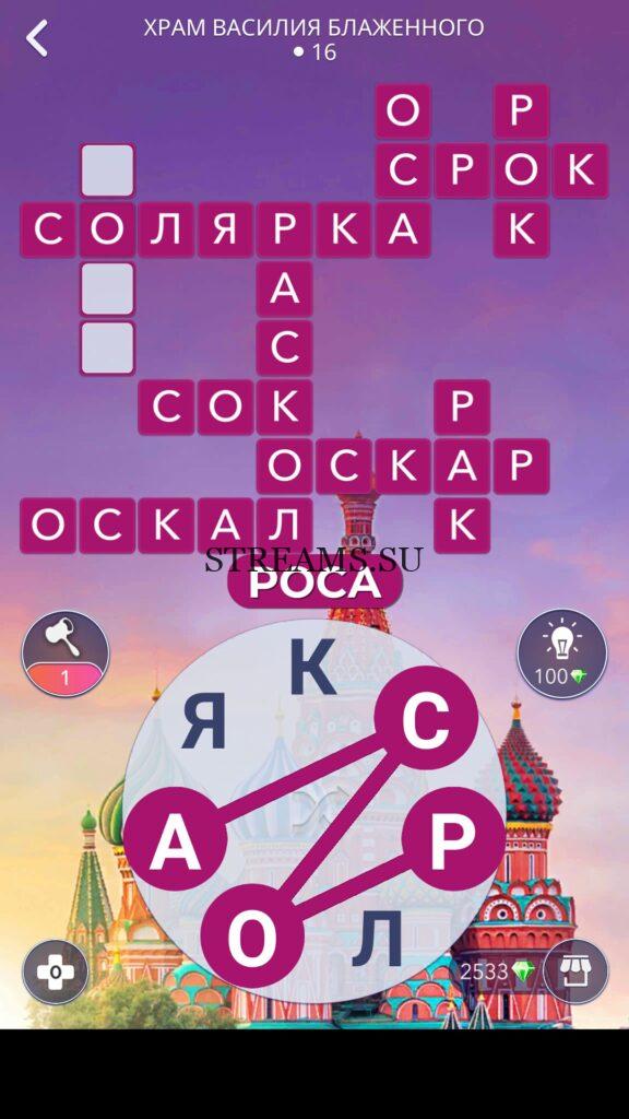 WOW ответы — Уровень 16: ХРАМ ВАСИЛИЯ БЛАЖЕННОГО. (463 — ВОЯЖ) В этом уровне нам нужно составить слова из следующих букв: «КАЛРЯСО«. Готовы совершить кругосветное путешествие? Эта чудесная игра исполнит ваше желание! С каждым последующим уровнем, будет расти сложность заданий. Игра WOW создана в виде кроссворда, в котором нужно будет соединять буквы, чтобы получить несколько слов. Чем больше вы будете отгадывать слов, тем проще будет отгадать остальное. С помощью Words of Wonders вы сможете расширить свой словарный запас, улучшить внимательность и хорошенько прокачать свой мозг! Если вы не можете пройти один из уровней, воспользуйтесь подсказкой с нашего сайта.