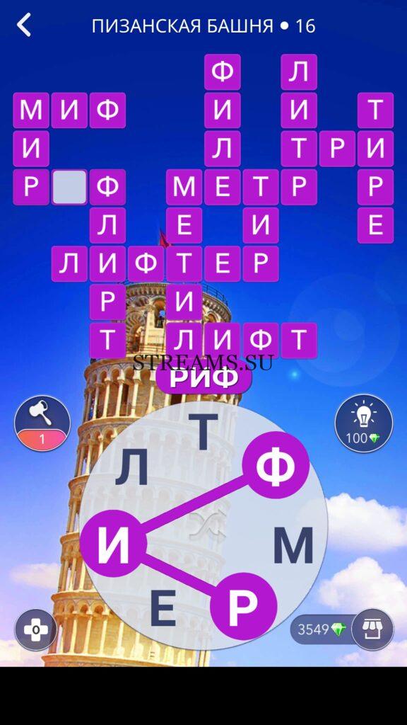 WOW ответы — Уровень 16: ПИЗАНСКАЯ БАШНЯ. (687 — ВОЯЖ) В этом уровне нам нужно составить слова из следующих букв: «ТФМРЕИЛ«. Готовы совершить кругосветное путешествие? Эта чудесная игра исполнит ваше желание! С каждым последующим уровнем, будет расти сложность заданий. Игра WOW создана в виде кроссворда, в котором нужно будет соединять буквы, чтобы получить несколько слов. Чем больше вы будете отгадывать слов, тем проще будет отгадать остальное. С помощью Words of Wonders вы сможете расширить свой словарный запас, улучшить внимательность и хорошенько прокачать свой мозг! Если вы не можете пройти один из уровней, воспользуйтесь подсказкой с нашего сайта.