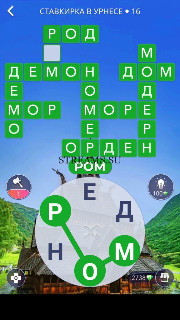 WOW ответы — Уровень 16: СТАВКИРКА В УРНЕСЕ. (495 — ВОЯЖ) В этом уровне нам нужно составить слова из следующих букв: «ЕДНРОМ«. Готовы совершить кругосветное путешествие? Эта чудесная игра исполнит ваше желание! С каждым последующим уровнем, будет расти сложность заданий. Игра WOW создана в виде кроссворда, в котором нужно будет соединять буквы, чтобы получить несколько слов. Чем больше вы будете отгадывать слов, тем проще будет отгадать остальное. С помощью Words of Wonders вы сможете расширить свой словарный запас, улучшить внимательность и хорошенько прокачать свой мозг! Если вы не можете пройти один из уровней, воспользуйтесь подсказкой с нашего сайта.