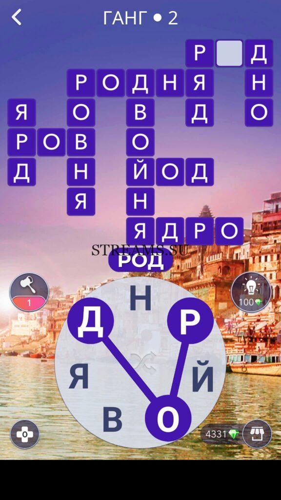 Все слова заключенные в этой анаграмме приведены на фото выше: «РОДНЯ», «ЯРД», «РОВНЯ», «ДНО», «ЙОД», «РОВ», «РЯД», «ЯДРО», «ДВОЙНЯ», «РОД»
