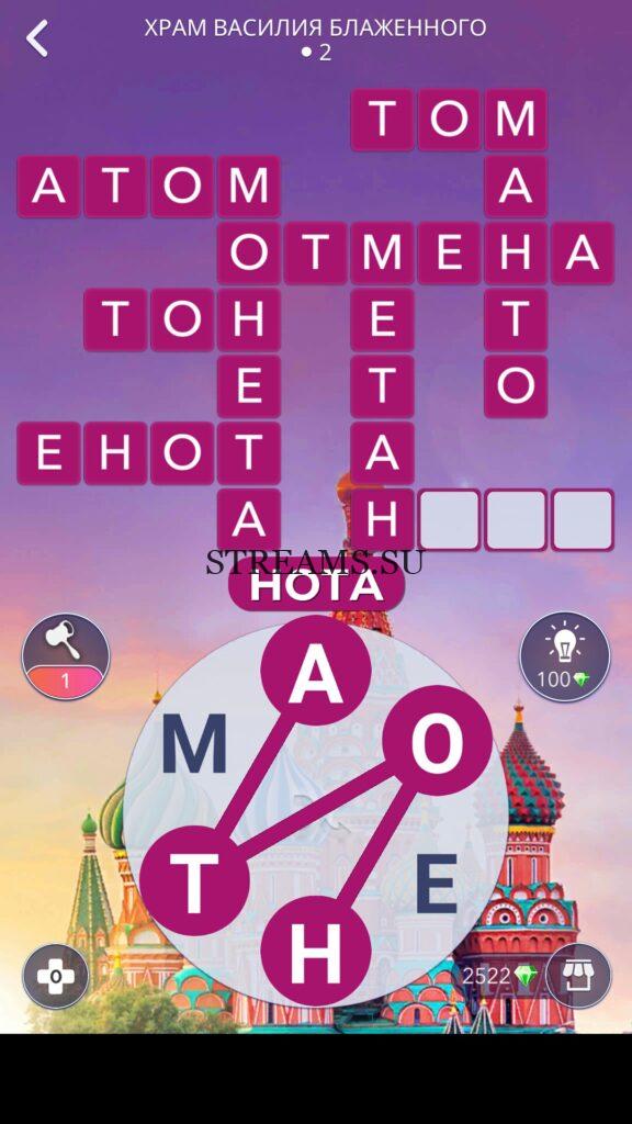 WOW ответы — Уровень 2: ХРАМ ВАСИЛИЯ БЛАЖЕННОГО. (449 — ВОЯЖ) В этом уровне нам нужно составить слова из следующих букв: «АОЕНТМ«. Готовы совершить кругосветное путешествие? Эта чудесная игра исполнит ваше желание! С каждым последующим уровнем, будет расти сложность заданий. Игра WOW создана в виде кроссворда, в котором нужно будет соединять буквы, чтобы получить несколько слов. Чем больше вы будете отгадывать слов, тем проще будет отгадать остальное. С помощью Words of Wonders вы сможете расширить свой словарный запас, улучшить внимательность и хорошенько прокачать свой мозг! Если вы не можете пройти один из уровней, воспользуйтесь подсказкой с нашего сайта.