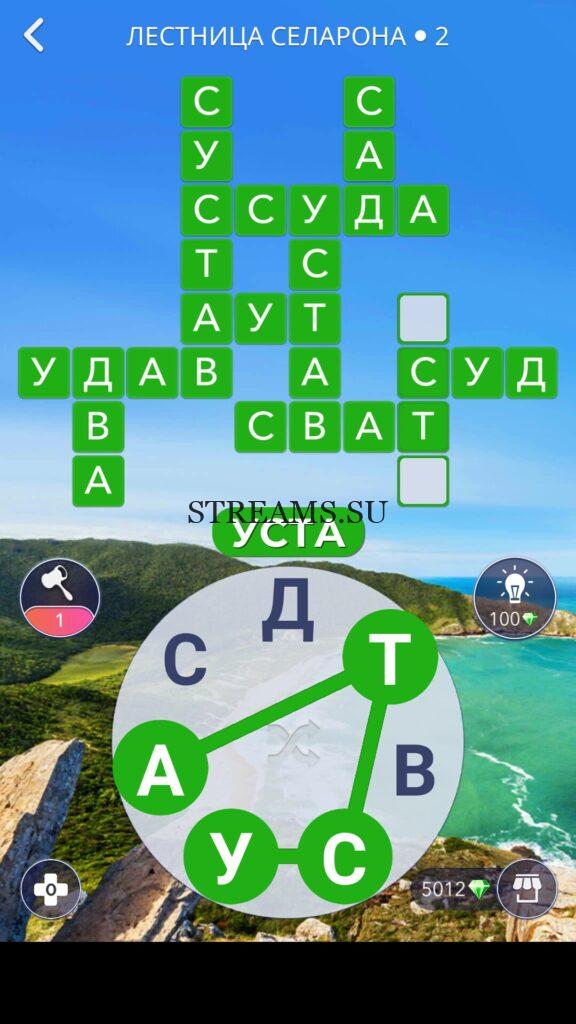 WOW ответы — Уровень 2: ЛЕСТНИЦА СЕЛАРОНА. (945 — ВОЯЖ) В этом уровне нам нужно будет составить слова из следующих букв: «ДСАУВТС«. Игра Words of Wonders напряжет вашу память и проверит словарный запас. В путешествии вокруг света игрок узнает множество новых слов. Онлайн-кроссворд развивает речь человека, наполняет ее красотой русского языка. В процессе прохождения нужно находить и выделять спрятанные термины на игровом поле. Приложение цепляет сразу, можно забыть о времени. Важно, что уровни просто не кончаются. Нужно потратить не один десяток часов, чтобы действительно решить их все. При обилии контента игра не страдает от однообразия, каждая позиция предлагает уникальные задачи и неповторяемые загадки. Ответ чуть ниже…