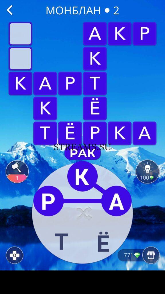 WOW ответы — Уровень 2: МОНБЛАН. (65 — ВОЯЖ) В этом уровне нам нужно составить слова из следующих букв: «КАЁТР«. Готовы совершить кругосветное путешествие? Эта чудесная игра исполнит ваше желание! С каждым последующим уровнем, будет расти сложность заданий. Игра WOW создана в виде кроссворда, в котором нужно будет соединять буквы, чтобы получить несколько слов. Чем больше вы будете отгадывать слов, тем проще будет отгадать остальное. С помощью Words of Wonders вы сможете расширить свой словарный запас, улучшить внимательность и хорошенько прокачать свой мозг! Если вы не можете пройти один из уровней, воспользуйтесь подсказкой с нашего сайта.