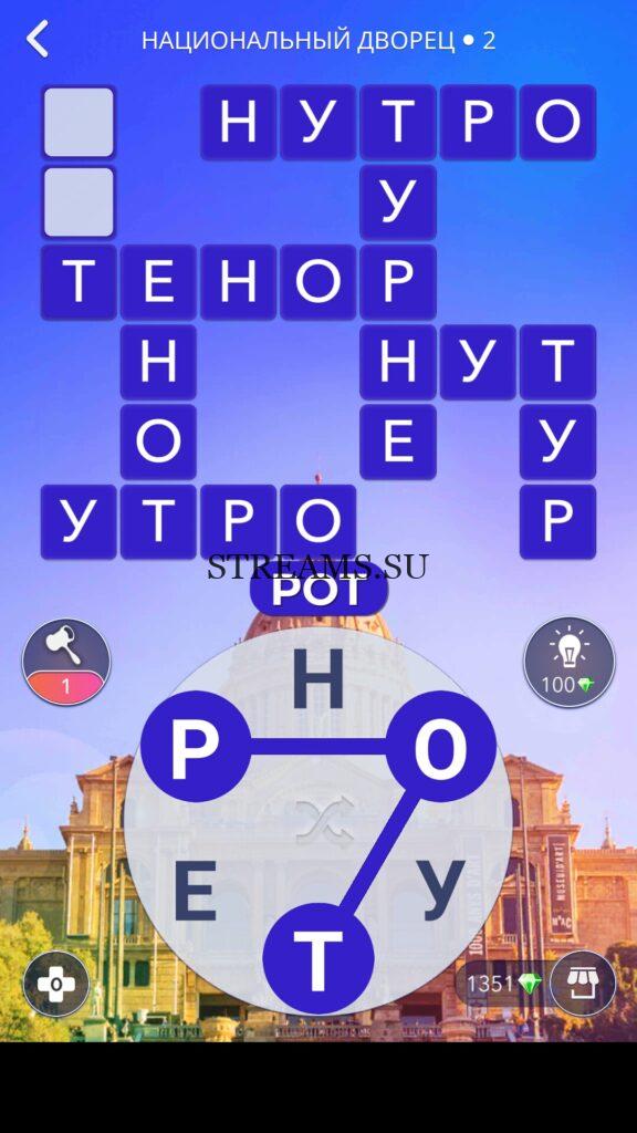 WOW ответы — Уровень 2: НАЦИОНАЛЬНЫЙ ДВОРЕЦ. (177 — ВОЯЖ) В этом уровне нам нужно составить слова из следующих букв: «ОУЕНТР«. Готовы совершить кругосветное путешествие? Эта чудесная игра исполнит ваше желание! С каждым последующим уровнем, будет расти сложность заданий. Игра WOW создана в виде кроссворда, в котором нужно будет соединять буквы, чтобы получить несколько слов. Чем больше вы будете отгадывать слов, тем проще будет отгадать остальное. С помощью Words of Wonders вы сможете расширить свой словарный запас, улучшить внимательность и хорошенько прокачать свой мозг! Если вы не можете пройти один из уровней, воспользуйтесь подсказкой с нашего сайта.