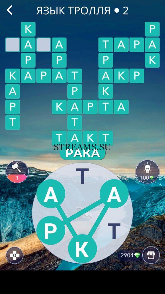 WOW ответы — Уровень 2: ЯЗЫК ТРОЛЛЯ. (545 — ВОЯЖ) В этом уровне нам нужно составить слова из следующих букв: «АТАКРТ«. Готовы совершить кругосветное путешествие? Эта чудесная игра исполнит ваше желание! С каждым последующим уровнем, будет расти сложность заданий. Игра WOW создана в виде кроссворда, в котором нужно будет соединять буквы, чтобы получить несколько слов. Чем больше вы будете отгадывать слов, тем проще будет отгадать остальное. С помощью Words of Wonders вы сможете расширить свой словарный запас, улучшить внимательность и хорошенько прокачать свой мозг! Если вы не можете пройти один из уровней, воспользуйтесь подсказкой с нашего сайта.