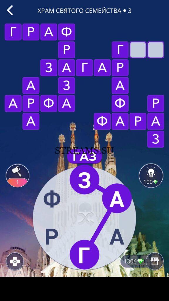 WOW ответы — Уровень 3: ХРАМ СВЯТОГО СЕМЕЙСТВА. (162 — ВОЯЖ) В этом уровне нам нужно составить слова из следующих букв: «ЗААГРФ«. Готовы совершить кругосветное путешествие? Эта чудесная игра исполнит ваше желание! С каждым последующим уровнем, будет расти сложность заданий. Игра WOW создана в виде кроссворда, в котором нужно будет соединять буквы, чтобы получить несколько слов. Чем больше вы будете отгадывать слов, тем проще будет отгадать остальное. С помощью Words of Wonders вы сможете расширить свой словарный запас, улучшить внимательность и хорошенько прокачать свой мозг! Если вы не можете пройти один из уровней, воспользуйтесь подсказкой с нашего сайта.