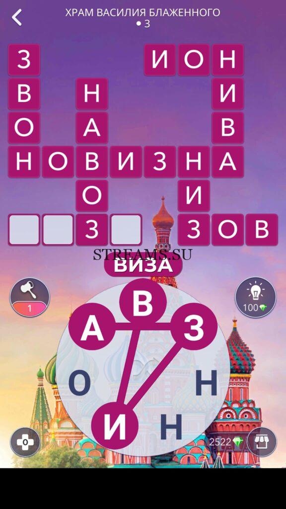 WOW ответы — Уровень 3: ХРАМ ВАСИЛИЯ БЛАЖЕННОГО. (450 — ВОЯЖ) В этом уровне нам нужно составить слова из следующих букв: «ИАНОЗВН«. Готовы совершить кругосветное путешествие? Эта чудесная игра исполнит ваше желание! С каждым последующим уровнем, будет расти сложность заданий. Игра WOW создана в виде кроссворда, в котором нужно будет соединять буквы, чтобы получить несколько слов. Чем больше вы будете отгадывать слов, тем проще будет отгадать остальное. С помощью Words of Wonders вы сможете расширить свой словарный запас, улучшить внимательность и хорошенько прокачать свой мозг! Если вы не можете пройти один из уровней, воспользуйтесь подсказкой с нашего сайта.