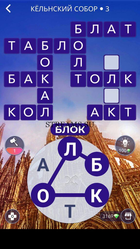 WOW ответы — Уровень 3: КЁЛЬНСКИЙ СОБОР. (594 — ВОЯЖ) В этом уровне нам нужно составить слова из следующих букв: «ЛБКТОА«. Готовы совершить кругосветное путешествие? Эта чудесная игра исполнит ваше желание! С каждым последующим уровнем, будет расти сложность заданий. Игра WOW создана в виде кроссворда, в котором нужно будет соединять буквы, чтобы получить несколько слов. Чем больше вы будете отгадывать слов, тем проще будет отгадать остальное. С помощью Words of Wonders вы сможете расширить свой словарный запас, улучшить внимательность и хорошенько прокачать свой мозг! Если вы не можете пройти один из уровней, воспользуйтесь подсказкой с нашего сайта.