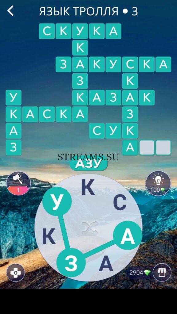 WOW ответы — Уровень 3: ЯЗЫК ТРОЛЛЯ. (546 — ВОЯЖ) В этом уровне нам нужно составить слова из следующих букв: «КСААЗКУ«. Готовы совершить кругосветное путешествие? Эта чудесная игра исполнит ваше желание! С каждым последующим уровнем, будет расти сложность заданий. Игра WOW создана в виде кроссворда, в котором нужно будет соединять буквы, чтобы получить несколько слов. Чем больше вы будете отгадывать слов, тем проще будет отгадать остальное. С помощью Words of Wonders вы сможете расширить свой словарный запас, улучшить внимательность и хорошенько прокачать свой мозг! Если вы не можете пройти один из уровней, воспользуйтесь подсказкой с нашего сайта.