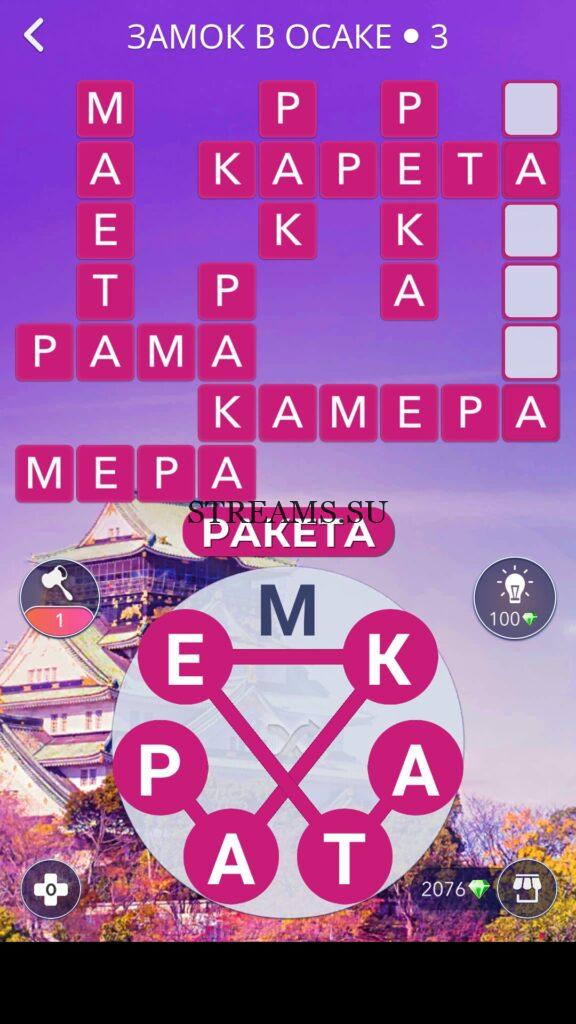 WOW ответы — Уровень 3: ЗАМОК В ОСАКЕ. (354 — ВОЯЖ) В этом уровне нам нужно составить слова из следующих букв: «МКАТАРЕ«. Готовы совершить кругосветное путешествие? Эта чудесная игра исполнит ваше желание! С каждым последующим уровнем, будет расти сложность заданий. Игра WOW создана в виде кроссворда, в котором нужно будет соединять буквы, чтобы получить несколько слов. Чем больше вы будете отгадывать слов, тем проще будет отгадать остальное. С помощью Words of Wonders вы сможете расширить свой словарный запас, улучшить внимательность и хорошенько прокачать свой мозг! Если вы не можете пройти один из уровней, воспользуйтесь подсказкой с нашего сайта.