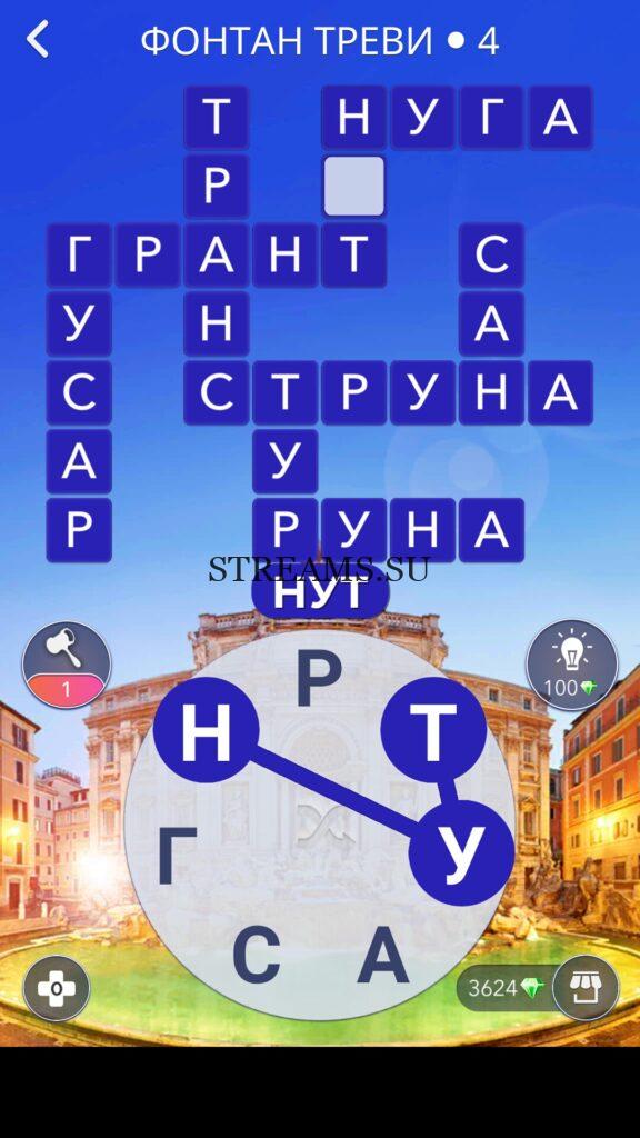 WOW ответы — Уровень 4: ФОНТАН ТРЕВИ. (707 — ВОЯЖ) В этом уровне нам нужно составить слова из следующих букв: «РТУАСГН«. Готовы совершить кругосветное путешествие? Эта чудесная игра исполнит ваше желание! С каждым последующим уровнем, будет расти сложность заданий. Игра WOW создана в виде кроссворда, в котором нужно будет соединять буквы, чтобы получить несколько слов. Чем больше вы будете отгадывать слов, тем проще будет отгадать остальное. С помощью Words of Wonders вы сможете расширить свой словарный запас, улучшить внимательность и хорошенько прокачать свой мозг! Если вы не можете пройти один из уровней, воспользуйтесь подсказкой с нашего сайта.