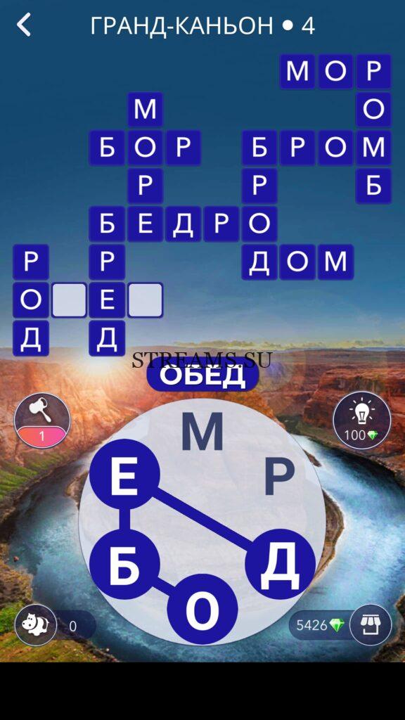 WOW ответы — Уровень 4: ГРАНД-КАНЬОН. (1027 — ВОЯЖ) В этом уровне нам нужно будет составить слова из следующих букв: «МРДОБЕ«. Игра Words of Wonders напряжет вашу память и проверит словарный запас. В путешествии вокруг света игрок узнает множество новых слов. Онлайн-кроссворд развивает речь человека, наполняет ее красотой русского языка. В процессе прохождения нужно находить и выделять спрятанные термины на игровом поле. Приложение цепляет сразу, можно забыть о времени. Важно, что уровни просто не кончаются. Нужно потратить не один десяток часов, чтобы действительно решить их все. При обилии контента игра не страдает от однообразия, каждая позиция предлагает уникальные задачи и неповторяемые загадки. Ответ чуть ниже…
