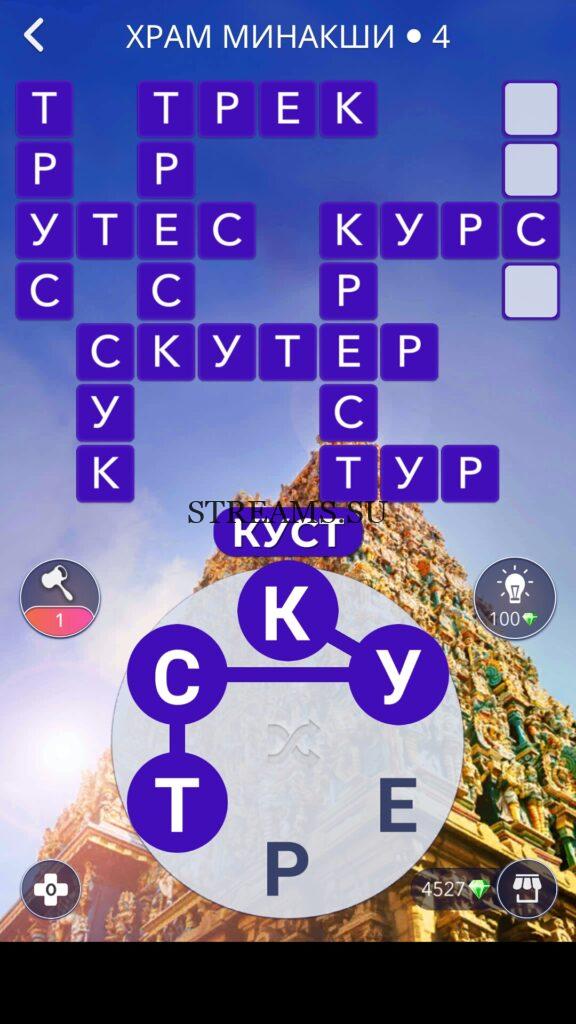 WOW ответы — Уровень 4: ХРАМ МИНАКШИ. (867 — ВОЯЖ) В этом уровне нам нужно составить слова из следующих букв: «КУЕРТС«. Готовы совершить кругосветное путешествие? Эта чудесная игра исполнит ваше желание! С каждым последующим уровнем, будет расти сложность заданий. Игра WOW создана в виде кроссворда, в котором нужно будет соединять буквы, чтобы получить несколько слов. Чем больше вы будете отгадывать слов, тем проще будет отгадать остальное. С помощью Words of Wonders вы сможете расширить свой словарный запас, улучшить внимательность и хорошенько прокачать свой мозг! Если вы не можете пройти один из уровней, воспользуйтесь подсказкой с нашего сайта.