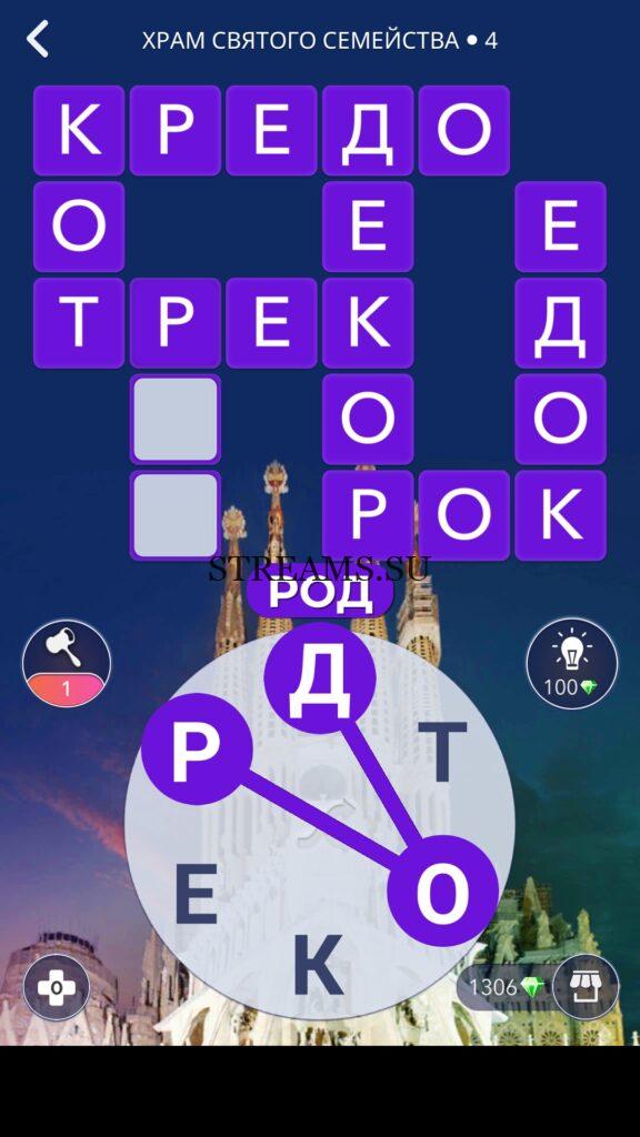 WOW ответы — Уровень 4: ХРАМ СВЯТОГО СЕМЕЙСТВА. (163 — ВОЯЖ) В этом уровне нам нужно составить слова из следующих букв: «ОДКТРЕ«. Готовы совершить кругосветное путешествие? Эта чудесная игра исполнит ваше желание! С каждым последующим уровнем, будет расти сложность заданий. Игра WOW создана в виде кроссворда, в котором нужно будет соединять буквы, чтобы получить несколько слов. Чем больше вы будете отгадывать слов, тем проще будет отгадать остальное. С помощью Words of Wonders вы сможете расширить свой словарный запас, улучшить внимательность и хорошенько прокачать свой мозг! Если вы не можете пройти один из уровней, воспользуйтесь подсказкой с нашего сайта.