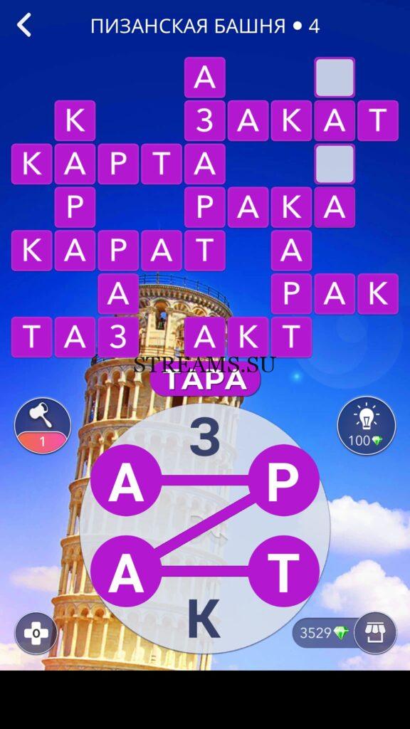 WOW ответы — Уровень 4: ПИЗАНСКАЯ БАШНЯ. (675 — ВОЯЖ) В этом уровне нам нужно составить слова из следующих букв: «ТРАЗАК«. Готовы совершить кругосветное путешествие? Эта чудесная игра исполнит ваше желание! С каждым последующим уровнем, будет расти сложность заданий. Игра WOW создана в виде кроссворда, в котором нужно будет соединять буквы, чтобы получить несколько слов. Чем больше вы будете отгадывать слов, тем проще будет отгадать остальное. С помощью Words of Wonders вы сможете расширить свой словарный запас, улучшить внимательность и хорошенько прокачать свой мозг! Если вы не можете пройти один из уровней, воспользуйтесь подсказкой с нашего сайта.