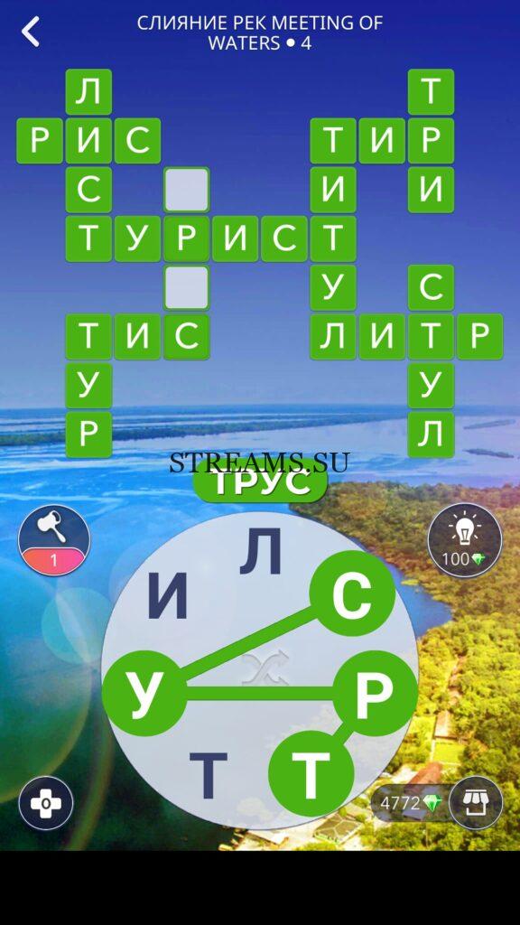 WOW ответы — Уровень 4: СЛИЯНИЕ РЕК MEETING OF WATERS. (899 — ВОЯЖ) В этом уровне нам нужно будет составить слова из следующих букв: «ИТРСЛУТ«. Геймеры хотят развивать свою речь, узнавать новые понятия и получать информацию о чудесах света. Игра Words of Wonders для Android отвечает этим требованиям. Онлайн-кроссворд предлагает игрокам кругосветное путешествие, в ходе которого нужно находить и выделять спрятанные слова на игровом поле. Придется здорово напрячь память и сконцентрировать внимание. WoW привлекает разнообразием задач и кроссвордов. Десятков часов не хватит, чтобы найти все, что спрятали разработчики. Многообразие контента поражает, уровни просто не заканчиваются. Пользователи выбирают позицию по странам, в каждой есть несколько достопримечательностей. Ответы на эту игру всегда доступны на нашем сайте!