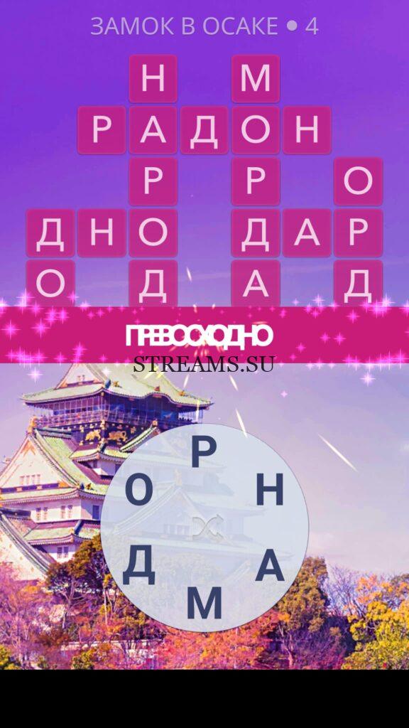 WOW ответы — Уровень 4: ЗАМОК В ОСАКЕ. (355 — ВОЯЖ) В этом уровне нам нужно составить слова из следующих букв: «МРАОДН«. Готовы совершить кругосветное путешествие? Эта чудесная игра исполнит ваше желание! С каждым последующим уровнем, будет расти сложность заданий. Игра WOW создана в виде кроссворда, в котором нужно будет соединять буквы, чтобы получить несколько слов. Чем больше вы будете отгадывать слов, тем проще будет отгадать остальное. С помощью Words of Wonders вы сможете расширить свой словарный запас, улучшить внимательность и хорошенько прокачать свой мозг! Если вы не можете пройти один из уровней, воспользуйтесь подсказкой с нашего сайта.