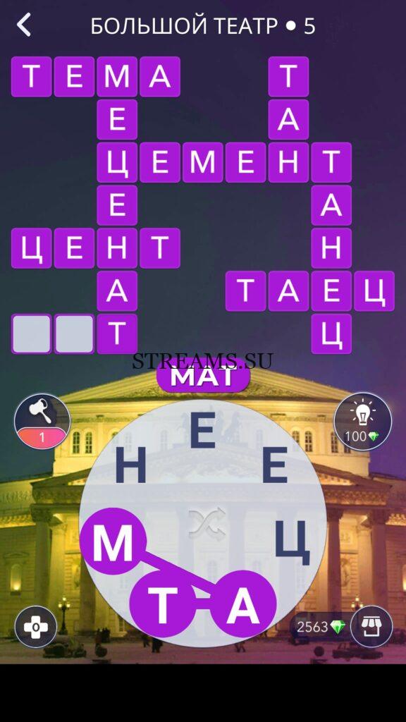 WOW ответы — Уровень 5: БОЛЬШОЙ ТЕАТР. (468 — ВОЯЖ) В этом уровне нам нужно составить слова из следующих букв: «ЦНЕАТЕМ«. Готовы совершить кругосветное путешествие? Эта чудесная игра исполнит ваше желание! С каждым последующим уровнем, будет расти сложность заданий. Игра WOW создана в виде кроссворда, в котором нужно будет соединять буквы, чтобы получить несколько слов. Чем больше вы будете отгадывать слов, тем проще будет отгадать остальное. С помощью Words of Wonders вы сможете расширить свой словарный запас, улучшить внимательность и хорошенько прокачать свой мозг! Если вы не можете пройти один из уровней, воспользуйтесь подсказкой с нашего сайта.