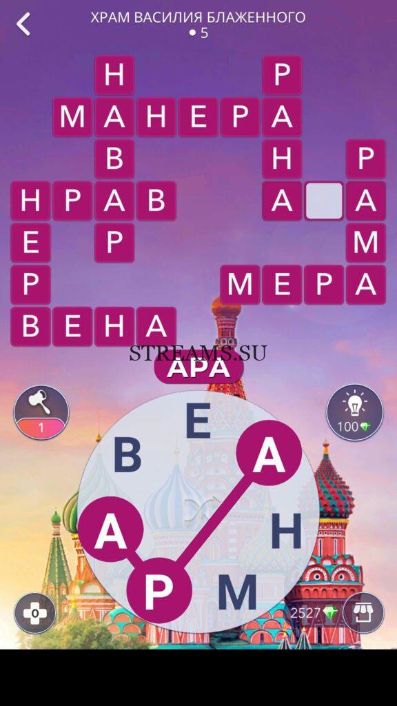 WOW ответы — Уровень 5: ХРАМ ВАСИЛИЯ БЛАЖЕННОГО. (452 — ВОЯЖ) В этом уровне нам нужно составить слова из следующих букв: «НЕВАМАР«. Готовы совершить кругосветное путешествие? Эта чудесная игра исполнит ваше желание! С каждым последующим уровнем, будет расти сложность заданий. Игра WOW создана в виде кроссворда, в котором нужно будет соединять буквы, чтобы получить несколько слов. Чем больше вы будете отгадывать слов, тем проще будет отгадать остальное. С помощью Words of Wonders вы сможете расширить свой словарный запас, улучшить внимательность и хорошенько прокачать свой мозг! Если вы не можете пройти один из уровней, воспользуйтесь подсказкой с нашего сайта.