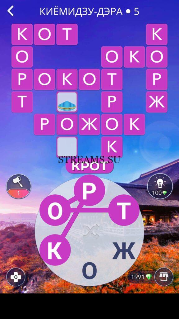 WOW ответы — Уровень 5: КИЁМИДЗУ-ДЭРА. (324 — ВОЯЖ) В этом уровне нам нужно составить слова из следующих букв: «РТЖОКО«. Готовы совершить кругосветное путешествие? Эта чудесная игра исполнит ваше желание! С каждым последующим уровнем, будет расти сложность заданий. Игра WOW создана в виде кроссворда, в котором нужно будет соединять буквы, чтобы получить несколько слов. Чем больше вы будете отгадывать слов, тем проще будет отгадать остальное. С помощью Words of Wonders вы сможете расширить свой словарный запас, улучшить внимательность и хорошенько прокачать свой мозг! Если вы не можете пройти один из уровней, воспользуйтесь подсказкой с нашего сайта.