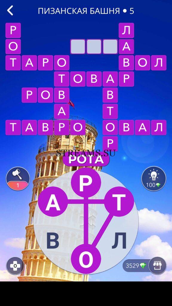 WOW ответы — Уровень 5: ПИЗАНСКАЯ БАШНЯ. (676 — ВОЯЖ) В этом уровне нам нужно составить слова из следующих букв: «РТЛОВА«. Готовы совершить кругосветное путешествие? Эта чудесная игра исполнит ваше желание! С каждым последующим уровнем, будет расти сложность заданий. Игра WOW создана в виде кроссворда, в котором нужно будет соединять буквы, чтобы получить несколько слов. Чем больше вы будете отгадывать слов, тем проще будет отгадать остальное. С помощью Words of Wonders вы сможете расширить свой словарный запас, улучшить внимательность и хорошенько прокачать свой мозг! Если вы не можете пройти один из уровней, воспользуйтесь подсказкой с нашего сайта.