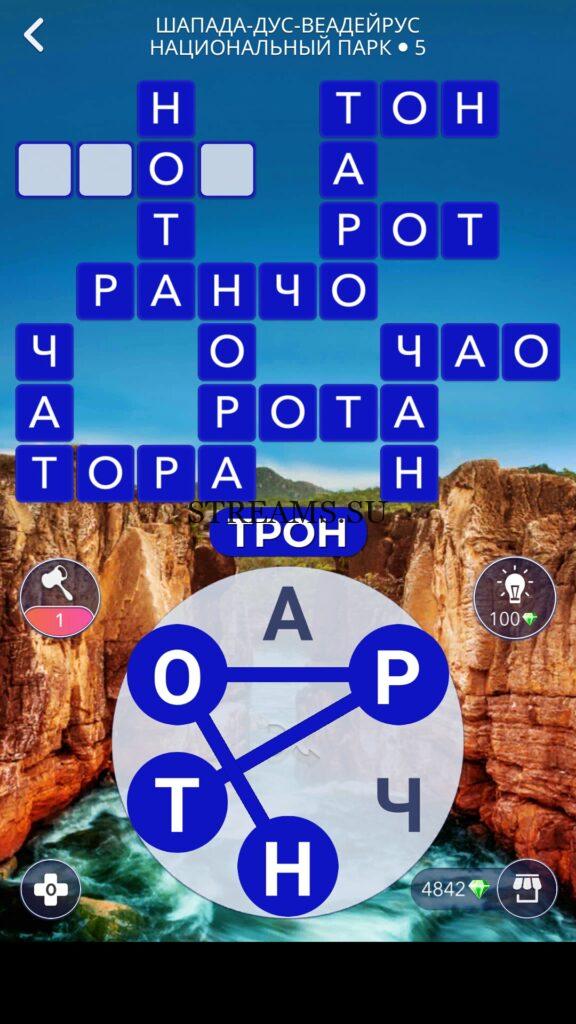 WOW ответы — Уровень 5: ШАПАДА-ДУС-ВЕАДЕЙРУС НАЦИОНАЛЬНЫЙ ПАРК. (916 — ВОЯЖ) В этом уровне нам нужно будет составить слова из следующих букв: «АРЧНТО«. Геймеры хотят развивать свою речь, узнавать новые понятия и получать информацию о чудесах света. Игра Words of Wonders для Android отвечает этим требованиям. Онлайн-кроссворд предлагает игрокам кругосветное путешествие, в ходе которого нужно находить и выделять спрятанные слова на игровом поле. Придется здорово напрячь память и сконцентрировать внимание. WoW привлекает разнообразием задач и кроссвордов. Десятков часов не хватит, чтобы найти все, что спрятали разработчики. Многообразие контента поражает, уровни просто не заканчиваются. Пользователи выбирают позицию по странам, в каждой есть несколько достопримечательностей. Ответы на эту игру всегда доступны на нашем сайте!