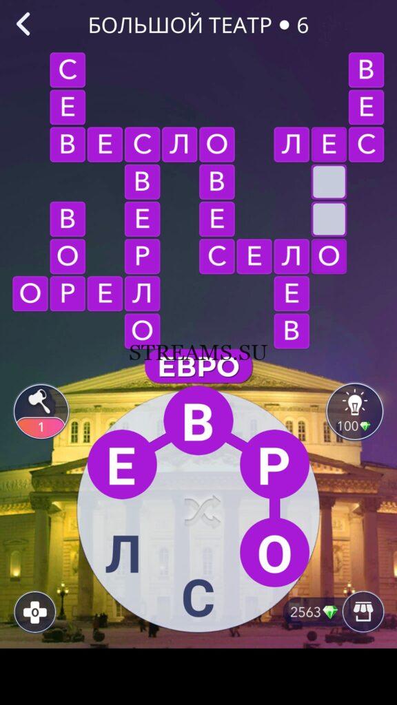 WOW ответы — Уровень 6: БОЛЬШОЙ ТЕАТР. (469 — ВОЯЖ) В этом уровне нам нужно составить слова из следующих букв: «ВРОСЛЕ«. Готовы совершить кругосветное путешествие? Эта чудесная игра исполнит ваше желание! С каждым последующим уровнем, будет расти сложность заданий. Игра WOW создана в виде кроссворда, в котором нужно будет соединять буквы, чтобы получить несколько слов. Чем больше вы будете отгадывать слов, тем проще будет отгадать остальное. С помощью Words of Wonders вы сможете расширить свой словарный запас, улучшить внимательность и хорошенько прокачать свой мозг! Если вы не можете пройти один из уровней, воспользуйтесь подсказкой с нашего сайта.