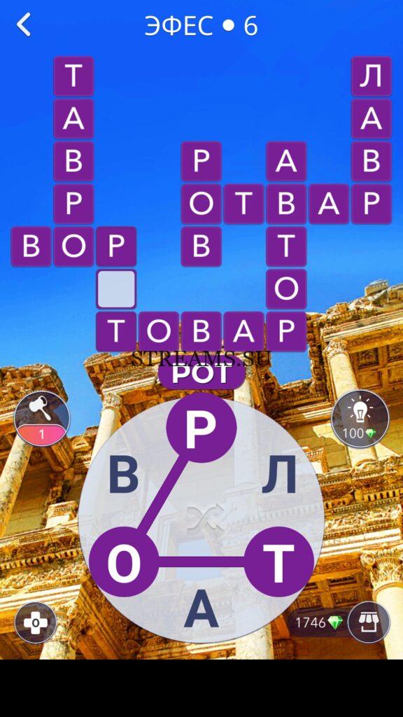 WOW ответы — Уровень 6: ЭФЕС. (277 — ВОЯЖ) В этом уровне нам нужно составить слова из следующих букв: «АТОРЛВ«. Готовы совершить кругосветное путешествие? Эта чудесная игра исполнит ваше желание! С каждым последующим уровнем, будет расти сложность заданий. Игра WOW создана в виде кроссворда, в котором нужно будет соединять буквы, чтобы получить несколько слов. Чем больше вы будете отгадывать слов, тем проще будет отгадать остальное. С помощью Words of Wonders вы сможете расширить свой словарный запас, улучшить внимательность и хорошенько прокачать свой мозг! Если вы не можете пройти один из уровней, воспользуйтесь подсказкой с нашего сайта.