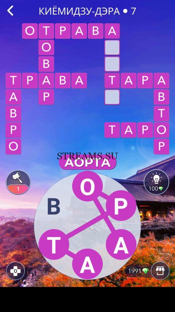 WOW ответы — Уровень 7: КИЁМИДЗУ-ДЭРА. (326 — ВОЯЖ) В этом уровне нам нужно составить слова из следующих букв: «ОРААТВ«. Готовы совершить кругосветное путешествие? Эта чудесная игра исполнит ваше желание! С каждым последующим уровнем, будет расти сложность заданий. Игра WOW создана в виде кроссворда, в котором нужно будет соединять буквы, чтобы получить несколько слов. Чем больше вы будете отгадывать слов, тем проще будет отгадать остальное. С помощью Words of Wonders вы сможете расширить свой словарный запас, улучшить внимательность и хорошенько прокачать свой мозг! Если вы не можете пройти один из уровней, воспользуйтесь подсказкой с нашего сайта.