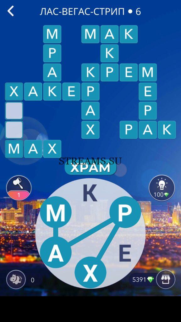 WOW ответы — Уровень 6: ЛАС-ВЕГАС-СТРИП. (1013 — ВОЯЖ) В этом уровне нам нужно будет составить слова из следующих букв: «ХРАМЕК«. Игра Words of Wonders напряжет вашу память и проверит словарный запас. В путешествии вокруг света игрок узнает множество новых слов. Онлайн-кроссворд развивает речь человека, наполняет ее красотой русского языка. В процессе прохождения нужно находить и выделять спрятанные термины на игровом поле. Приложение цепляет сразу, можно забыть о времени. Важно, что уровни просто не кончаются. Нужно потратить не один десяток часов, чтобы действительно решить их все. При обилии контента игра не страдает от однообразия, каждая позиция предлагает уникальные задачи и неповторяемые загадки. Ответ чуть ниже…