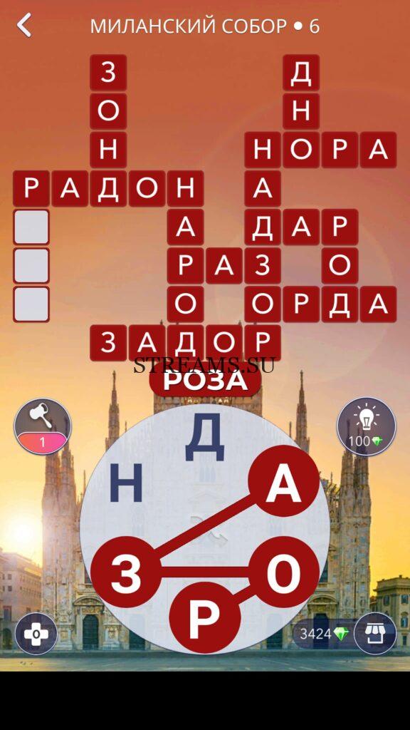 WOW ответы — Уровень 6: МИЛАНСКИЙ СОБОР. (645 — ВОЯЖ) В этом уровне нам нужно составить слова из следующих букв: «ЗРНОДА«. Готовы совершить кругосветное путешествие? Эта чудесная игра исполнит ваше желание! С каждым последующим уровнем, будет расти сложность заданий. Игра WOW создана в виде кроссворда, в котором нужно будет соединять буквы, чтобы получить несколько слов. Чем больше вы будете отгадывать слов, тем проще будет отгадать остальное. С помощью Words of Wonders вы сможете расширить свой словарный запас, улучшить внимательность и хорошенько прокачать свой мозг! Если вы не можете пройти один из уровней, воспользуйтесь подсказкой с нашего сайта.