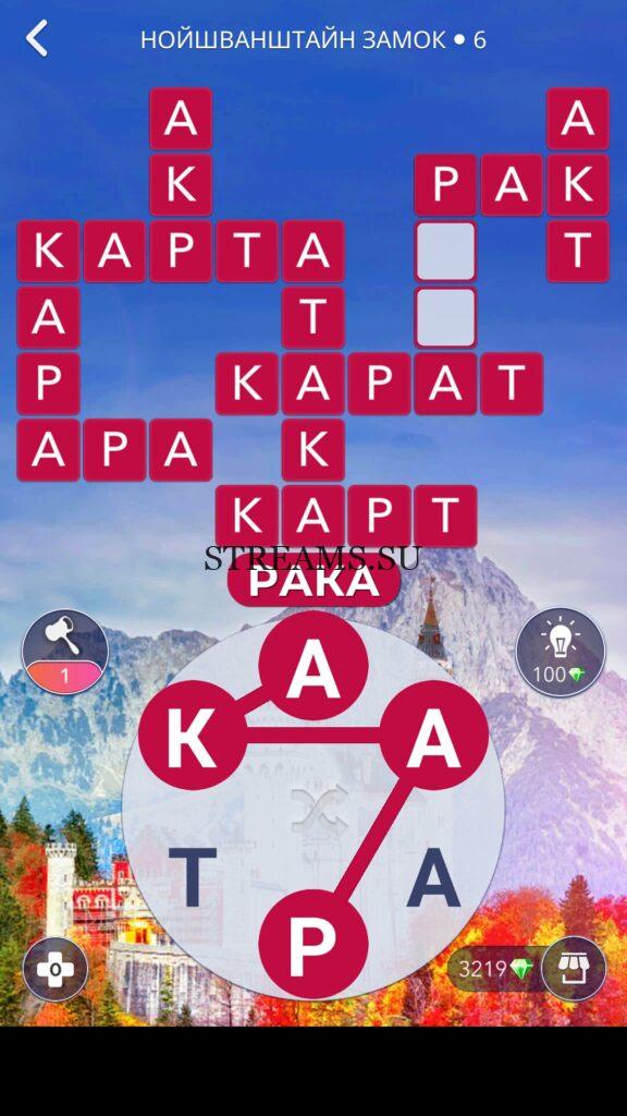 WOW ответы — Уровень 6: НОЙШВАНШТАЙН ЗАМОК. (613 — ВОЯЖ) В этом уровне нам нужно составить слова из следующих букв: «ААТАРК«. Готовы совершить кругосветное путешествие? Эта чудесная игра исполнит ваше желание! С каждым последующим уровнем, будет расти сложность заданий. Игра WOW создана в виде кроссворда, в котором нужно будет соединять буквы, чтобы получить несколько слов. Чем больше вы будете отгадывать слов, тем проще будет отгадать остальное. С помощью Words of Wonders вы сможете расширить свой словарный запас, улучшить внимательность и хорошенько прокачать свой мозг! Если вы не можете пройти один из уровней, воспользуйтесь подсказкой с нашего сайта.