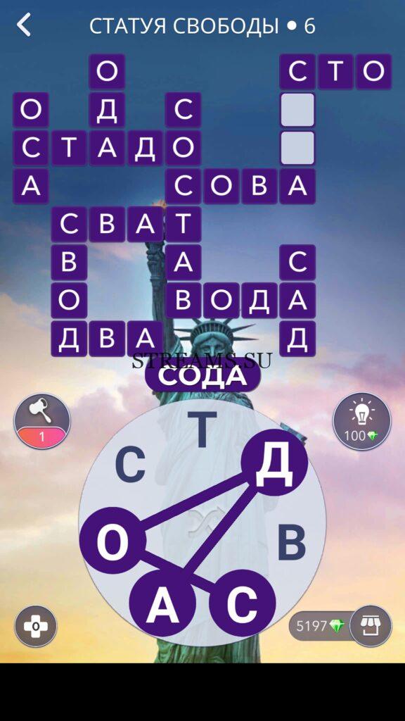 WOW ответы — Уровень 6: СТАТУЯ СВОБОДЫ. (965 — ВОЯЖ) В этом уровне нам нужно будет составить слова из следующих букв: «ТВОАСДС«. Игра Words of Wonders напряжет вашу память и проверит словарный запас. В путешествии вокруг света игрок узнает множество новых слов. Онлайн-кроссворд развивает речь человека, наполняет ее красотой русского языка. В процессе прохождения нужно находить и выделять спрятанные термины на игровом поле. Приложение цепляет сразу, можно забыть о времени. Важно, что уровни просто не кончаются. Нужно потратить не один десяток часов, чтобы действительно решить их все. При обилии контента игра не страдает от однообразия, каждая позиция предлагает уникальные задачи и неповторяемые загадки. Ответ чуть ниже…