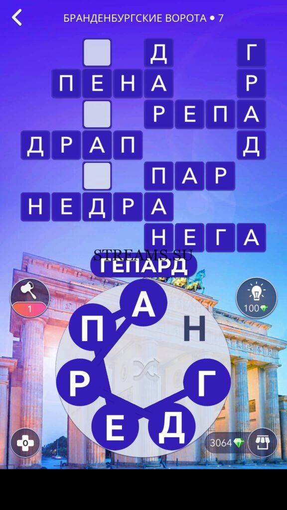 WOW ответы — Уровень 7: БРАНДЕНБУРГСКИЕ ВОРОТА. (566 — ВОЯЖ) В этом уровне нам нужно составить слова из следующих букв: «АНГДЕРП«. Готовы совершить кругосветное путешествие? Эта чудесная игра исполнит ваше желание! С каждым последующим уровнем, будет расти сложность заданий. Игра WOW создана в виде кроссворда, в котором нужно будет соединять буквы, чтобы получить несколько слов. Чем больше вы будете отгадывать слов, тем проще будет отгадать остальное. С помощью Words of Wonders вы сможете расширить свой словарный запас, улучшить внимательность и хорошенько прокачать свой мозг! Если вы не можете пройти один из уровней, воспользуйтесь подсказкой с нашего сайта.