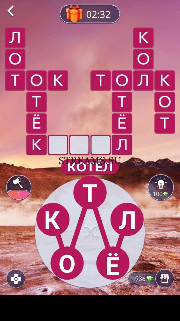 Все слова заключенные в этой анаграмме приведены на фото выше: «ОТЁК», «КОТ», «ТОК», «ТОЛК», «КОЛ», «ЛОТ», «ОТЁЛ», «КОТЁЛ»