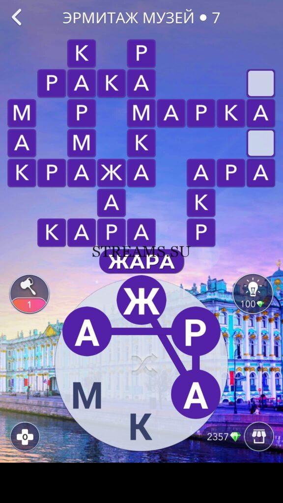WOW ответы — Уровень 7: ЭРМИТАЖ МУЗЕЙ. (406 — ВОЯЖ) В этом уровне нам нужно составить слова из следующих букв: «ЖРАКМА«. Готовы совершить кругосветное путешествие? Эта чудесная игра исполнит ваше желание! С каждым последующим уровнем, будет расти сложность заданий. Игра WOW создана в виде кроссворда, в котором нужно будет соединять буквы, чтобы получить несколько слов. Чем больше вы будете отгадывать слов, тем проще будет отгадать остальное. С помощью Words of Wonders вы сможете расширить свой словарный запас, улучшить внимательность и хорошенько прокачать свой мозг! Если вы не можете пройти один из уровней, воспользуйтесь подсказкой с нашего сайта.