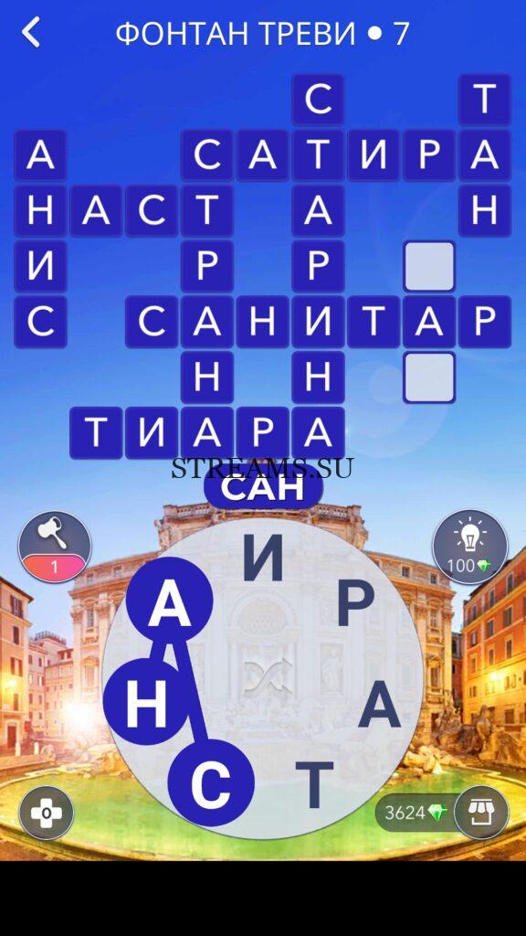 WOW ответы — Уровень 7: ФОНТАН ТРЕВИ. (710 — ВОЯЖ) В этом уровне нам нужно составить слова из следующих букв: «АНИРСАТ«. Готовы совершить кругосветное путешествие? Эта чудесная игра исполнит ваше желание! С каждым последующим уровнем, будет расти сложность заданий. Игра WOW создана в виде кроссворда, в котором нужно будет соединять буквы, чтобы получить несколько слов. Чем больше вы будете отгадывать слов, тем проще будет отгадать остальное. С помощью Words of Wonders вы сможете расширить свой словарный запас, улучшить внимательность и хорошенько прокачать свой мозг! Если вы не можете пройти один из уровней, воспользуйтесь подсказкой с нашего сайта.