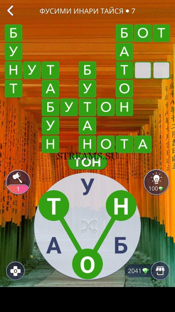 WOW ответы — Уровень 7: ФУСИМИ ИНАРИ ТАЙСЯ. (342 — ВОЯЖ) В этом уровне нам нужно составить слова из следующих букв: «УНБОАТ«. Готовы совершить кругосветное путешествие? Эта чудесная игра исполнит ваше желание! С каждым последующим уровнем, будет расти сложность заданий. Игра WOW создана в виде кроссворда, в котором нужно будет соединять буквы, чтобы получить несколько слов. Чем больше вы будете отгадывать слов, тем проще будет отгадать остальное. С помощью Words of Wonders вы сможете расширить свой словарный запас, улучшить внимательность и хорошенько прокачать свой мозг! Если вы не можете пройти один из уровней, воспользуйтесь подсказкой с нашего сайта.