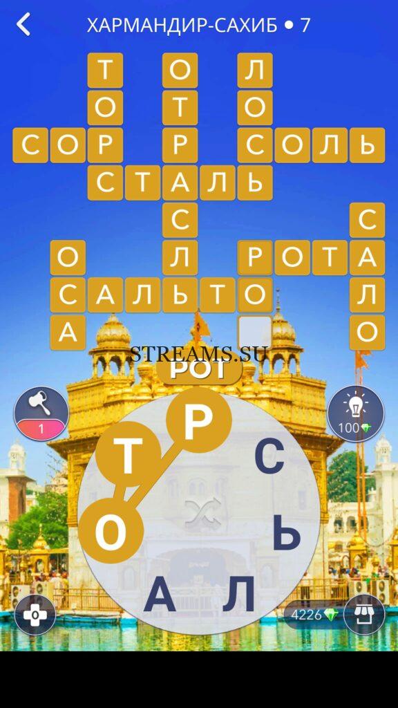 WOW ответы — Уровень 7: ХАРМАНДИР-САХИБ. (806 — ВОЯЖ) В этом уровне нам нужно составить слова из следующих букв: «РСЬЛАОТ«. Готовы совершить кругосветное путешествие? Эта чудесная игра исполнит ваше желание! С каждым последующим уровнем, будет расти сложность заданий. Игра WOW создана в виде кроссворда, в котором нужно будет соединять буквы, чтобы получить несколько слов. Чем больше вы будете отгадывать слов, тем проще будет отгадать остальное. С помощью Words of Wonders вы сможете расширить свой словарный запас, улучшить внимательность и хорошенько прокачать свой мозг! Если вы не можете пройти один из уровней, воспользуйтесь подсказкой с нашего сайта.