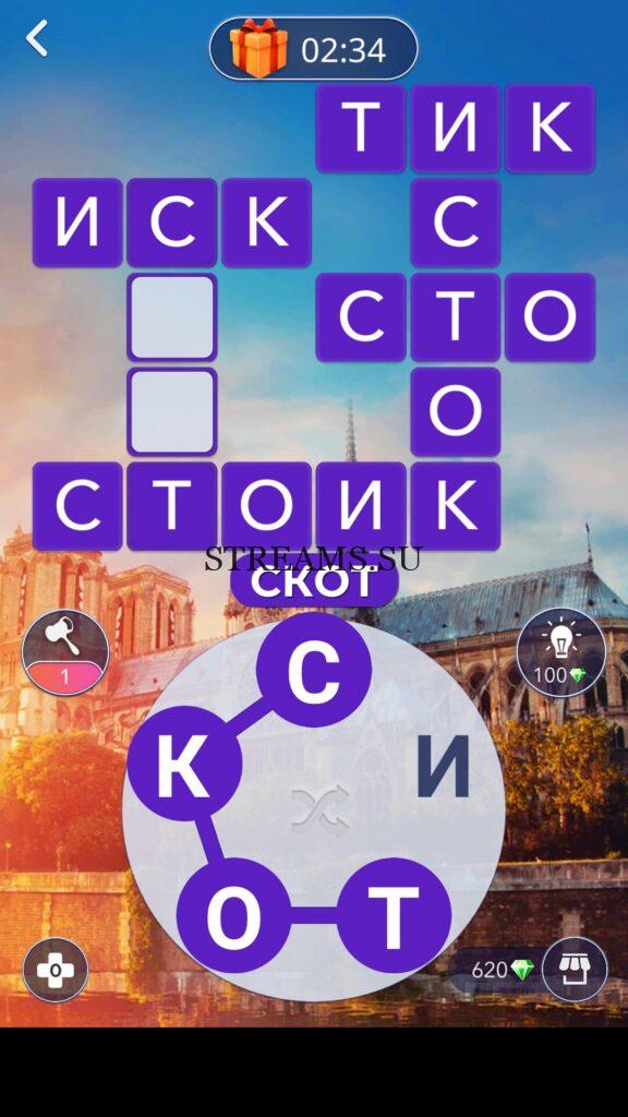 WOW ответы — Уровень 7: СОБОР ПАРИЖСКОЙ БОГОМАТЕРИ. (34 — ВОЯЖ) В этом уровне нам нужно составить слова из следующих букв: «ИСОКТ«. Готовы совершить кругосветное путешествие? Эта чудесная игра исполнит ваше желание! С каждым последующим уровнем, будет расти сложность заданий. Игра WOW создана в виде кроссворда, в котором нужно будет соединять буквы, чтобы получить несколько слов. Чем больше вы будете отгадывать слов, тем проще будет отгадать остальное. С помощью Words of Wonders вы сможете расширить свой словарный запас, улучшить внимательность и хорошенько прокачать свой мозг! Если вы не можете пройти один из уровней, воспользуйтесь подсказкой с нашего сайта.