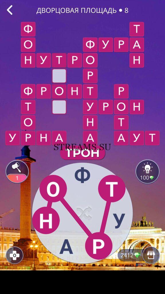 WOW ответы — Уровень 8: ДВОРЦОВАЯ ПЛОЩАДЬ. (423 — ВОЯЖ) В этом уровне нам нужно составить слова из следующих букв: «УОФРНАТ«. Готовы совершить кругосветное путешествие? Эта чудесная игра исполнит ваше желание! С каждым последующим уровнем, будет расти сложность заданий. Игра WOW создана в виде кроссворда, в котором нужно будет соединять буквы, чтобы получить несколько слов. Чем больше вы будете отгадывать слов, тем проще будет отгадать остальное. С помощью Words of Wonders вы сможете расширить свой словарный запас, улучшить внимательность и хорошенько прокачать свой мозг! Если вы не можете пройти один из уровней, воспользуйтесь подсказкой с нашего сайта.